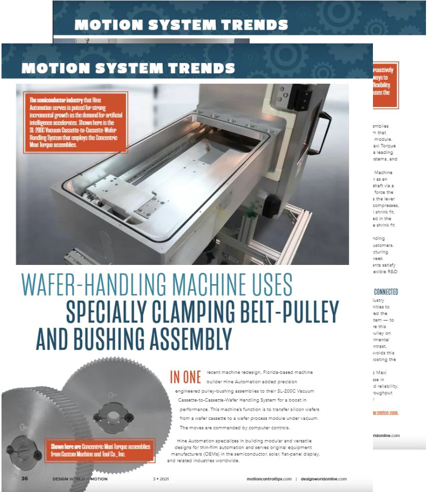 Wafer-Handling Machine Uses Specially Clamping Belt-Pulley and Bushing Assembly