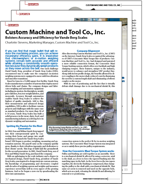 "It is a fantastic and very innovative product that makes complete sense for our needs," said David Vande Berg of Vande Berg Scales. "The Concentric Maxi Torque's smooth running power is key to the in-motion weighing system's performance."
